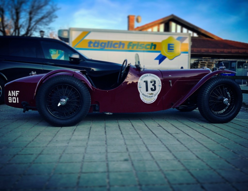 )…sehr einfach da er einen fabric body hatte (auf holz gespanntes leder/kunstoff…was auf ein wirklich altes fahrzeug schließen läst ). auch das kennzeichen scheint das originale zu sein ANF 901 lt. glass´s index wurde das kennzeichen 1934 in manchester herausgegeben (ich denke die 901 stand für riley 9/nine…… der erste? )