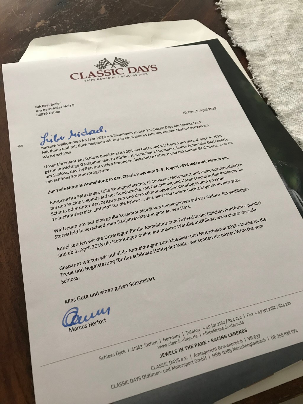 Ich habe letzte Woche meine Anmeldeunterlagen abgeschickt und freue mich wenn ich Euch bei den Schloss Dyck Classic Days 2018 dann auch sehen und den einen oder anderen den ich noch nicht persönlich kennen gelernt habe mal treffe (sprecht mich einfach mal an….traut euch ruhig).