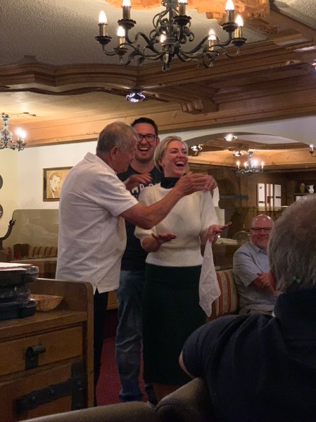 Am Abend gabs dann im Hotel das Abendessen und natürlich gabs auch hier wieder einen Event. Wer auf der Strecke aufgepasst hat (oder zb. mitgezählt wieviele Kurve das Jochpass hat ….ohne Kreisverkehr davor)….konnte dann einen ausgeteilten Fragebogen beantworten.