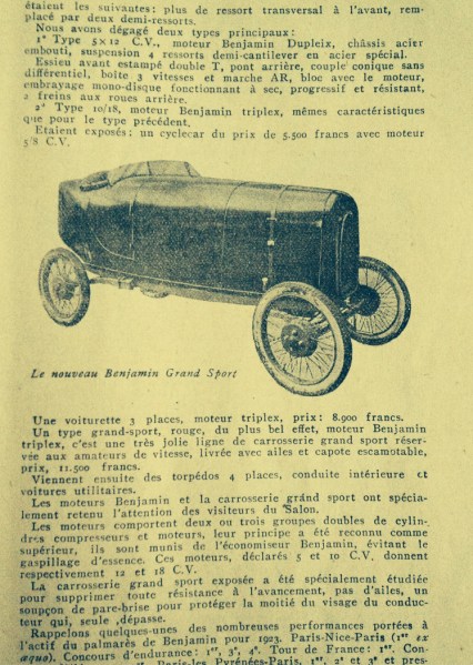 Benjamin konnte übrigens auch in „Schön“ was sie mit ihrem edlen Model „Bagatelle“ eindrucksvoll auf dem Automobilsalon 1922 vorführten. Vermutlich sind von diesem nur 2 Stück entstanden (ein Schwarzes und ein Weißes).