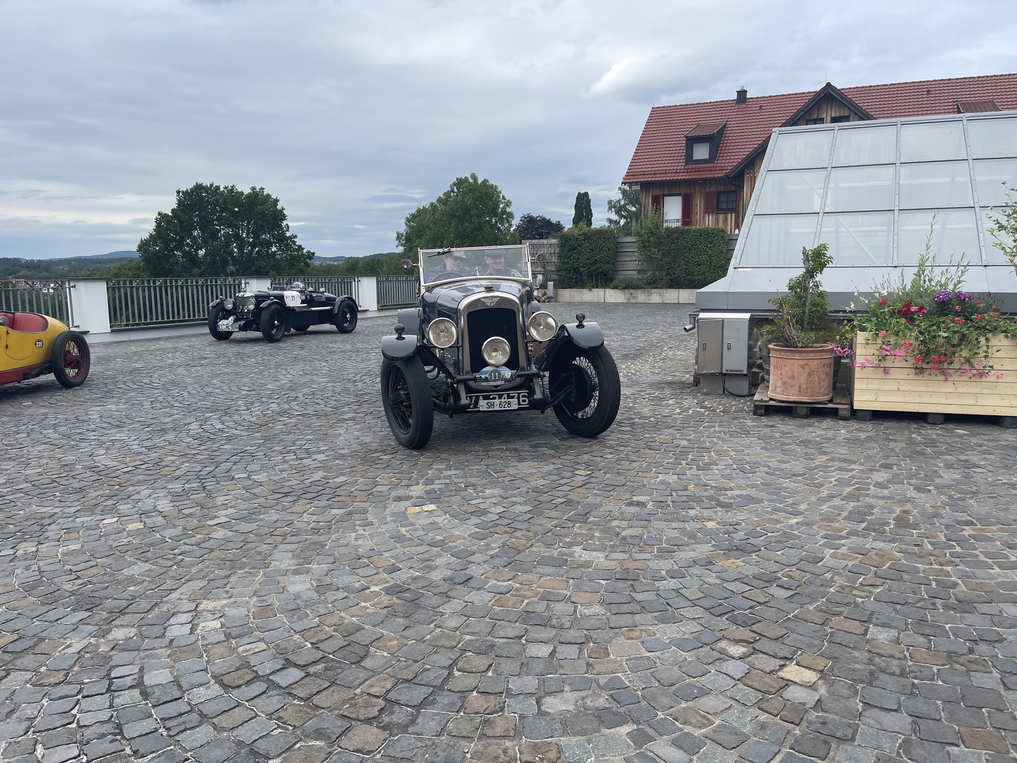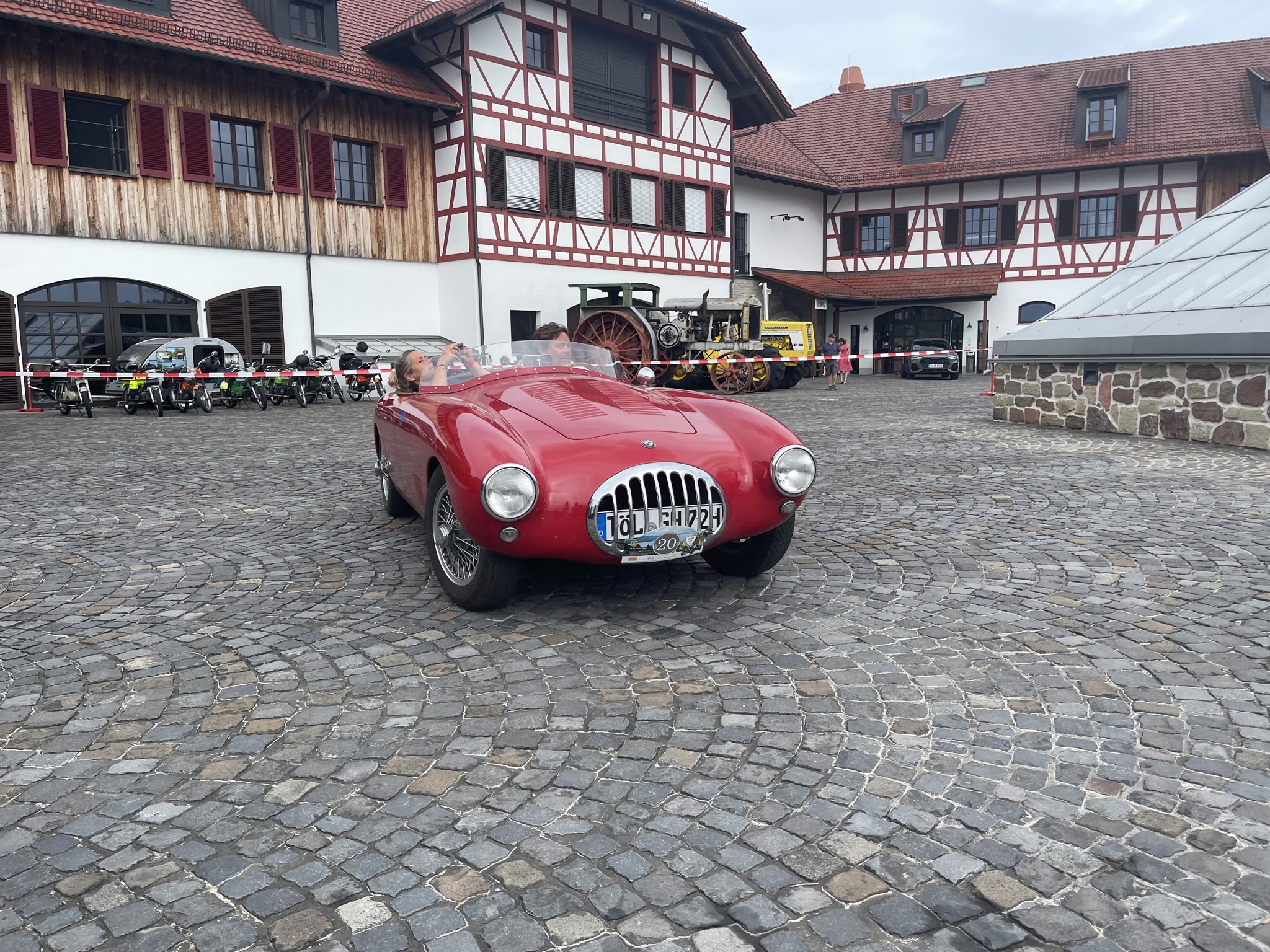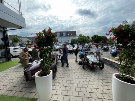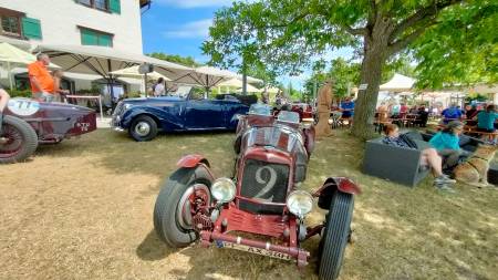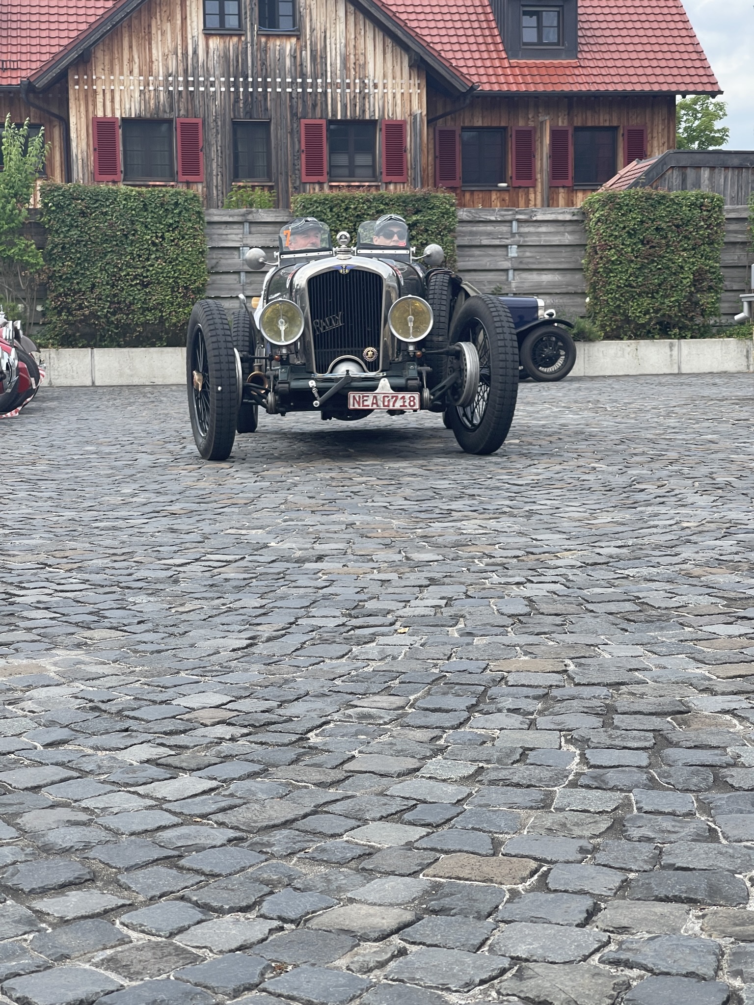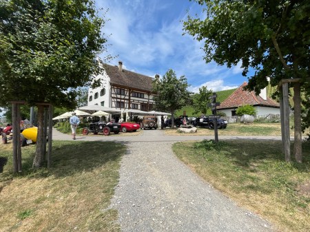 Ich denke (auch) die Gäste dort dachten sich das es ein wirklich schöner und vor allen Dingen ruhiger Platz wäre….bis wir kamen….20 Vorkriegsfahrzeug und nicht nur dies….wir haben dort eine Wertungsprüfung gemacht (den großen Preis von Gebhardsweiler). Es gab am Hof einen Parkur den wir mit genau 16 Sekunden, dann mit 20 und zum Schluss mit 18 Sekunden umrunden mussten…und das ohne Stoppuhr! 20 Vorkriegsautos haben also am Innhof (mit offenen Auspuff) den Parkur umrundet – Wir hatten auf jeden Falls Spaß 😉