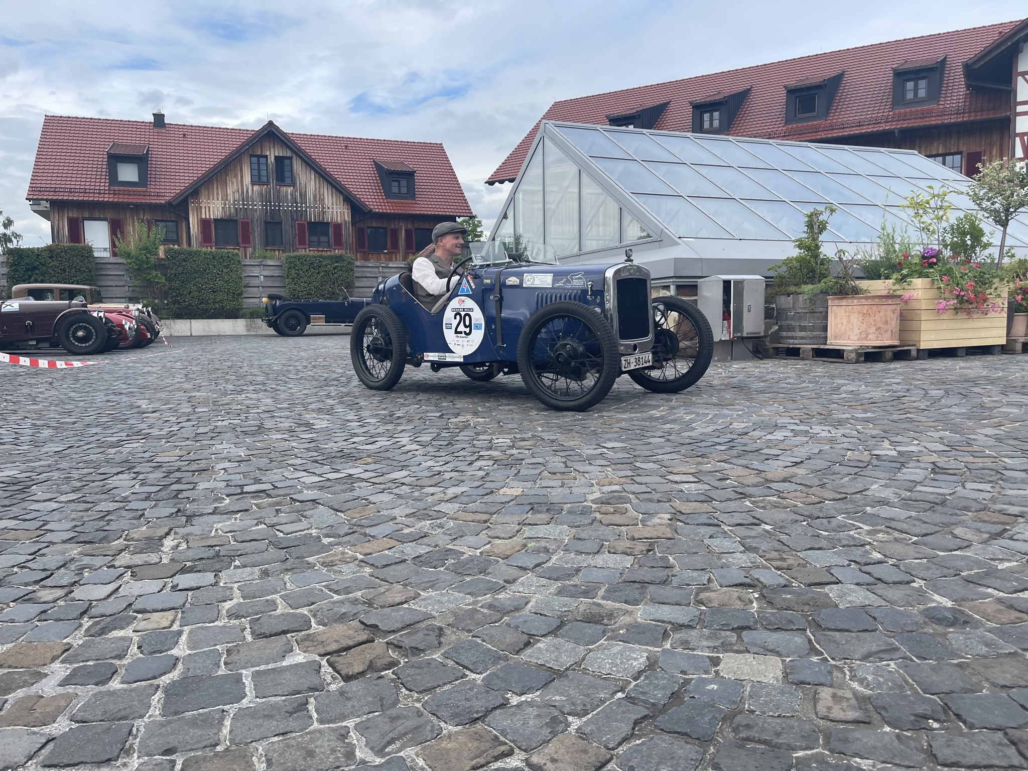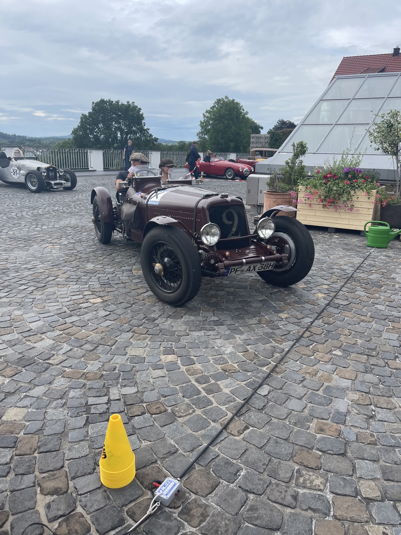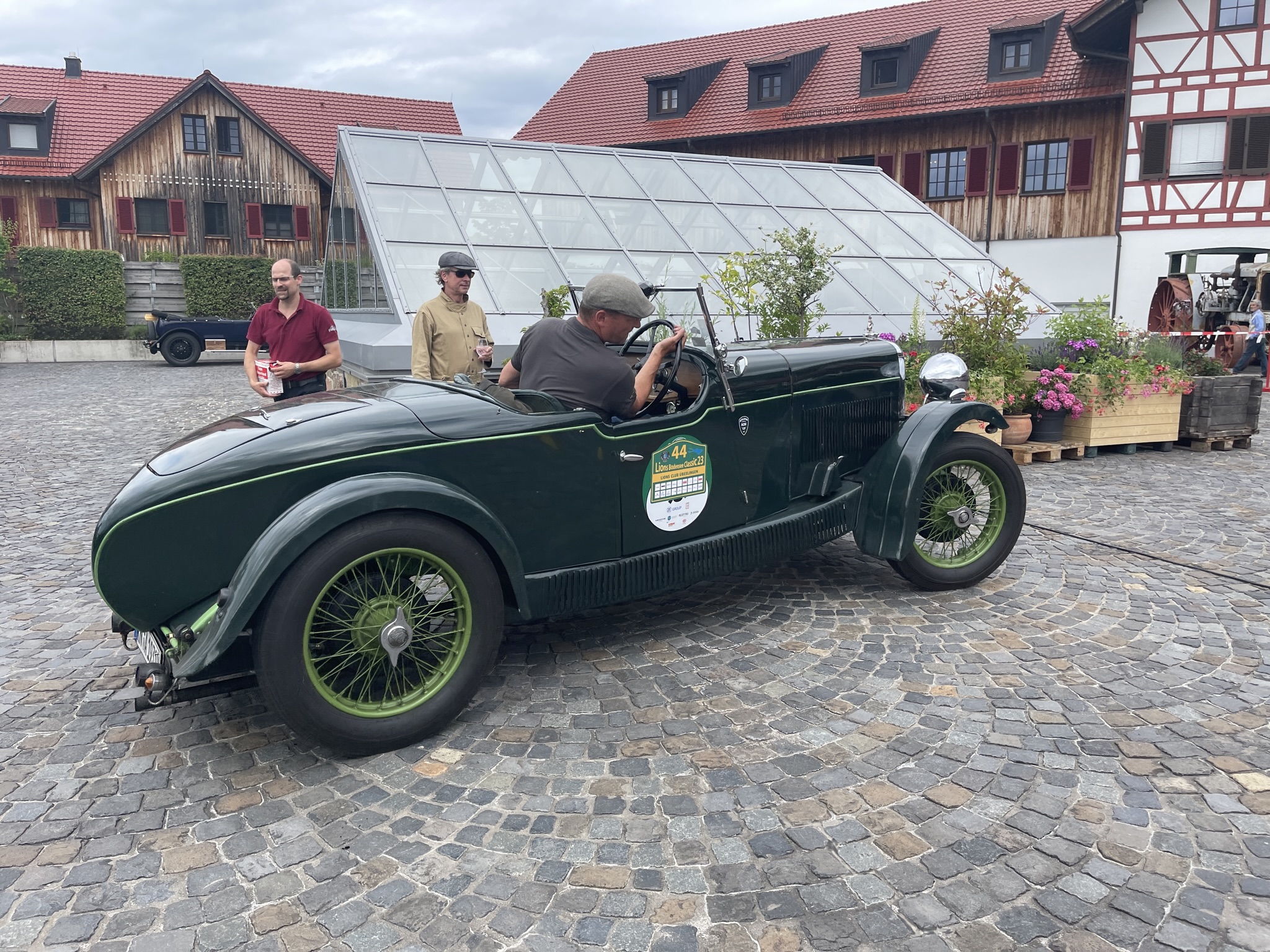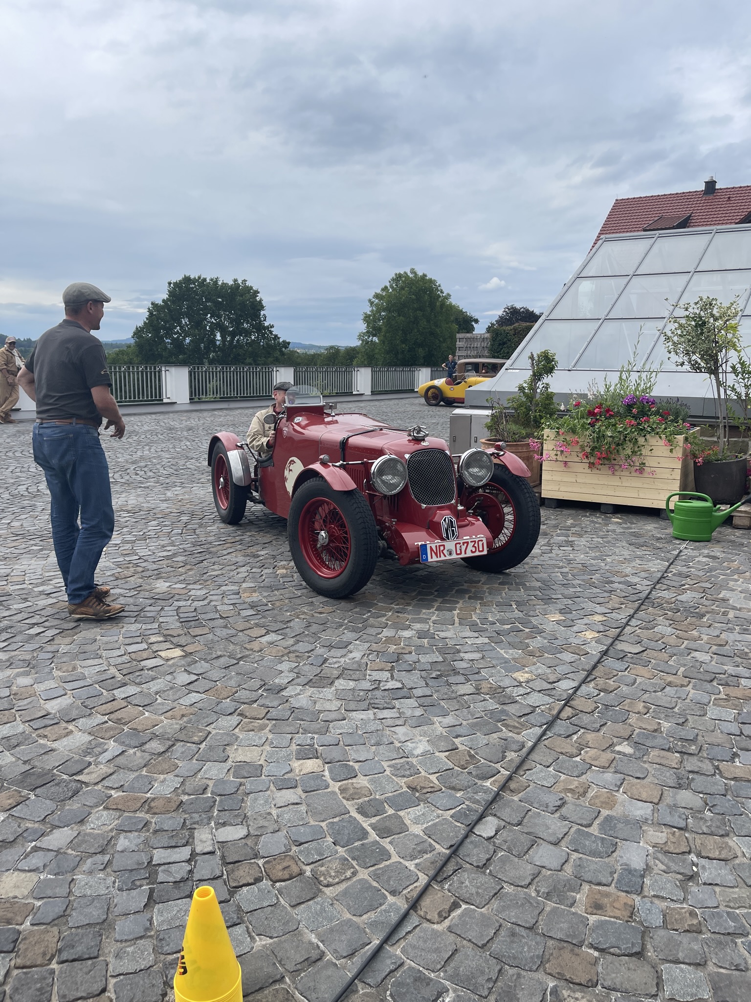 Ich denke (auch) die Gäste dort dachten sich das es ein wirklich schöner und vor allen Dingen ruhiger Platz wäre….bis wir kamen….20 Vorkriegsfahrzeug und nicht nur dies….wir haben dort eine Wertungsprüfung gemacht (den großen Preis von Gebhardsweiler). Es gab am Hof einen Parkur den wir mit genau 16 Sekunden, dann mit 20 und zum Schluss mit 18 Sekunden umrunden mussten…und das ohne Stoppuhr! 20 Vorkriegsautos haben also am Innhof (mit offenen Auspuff) den Parkur umrundet – Wir hatten auf jeden Falls Spaß 😉