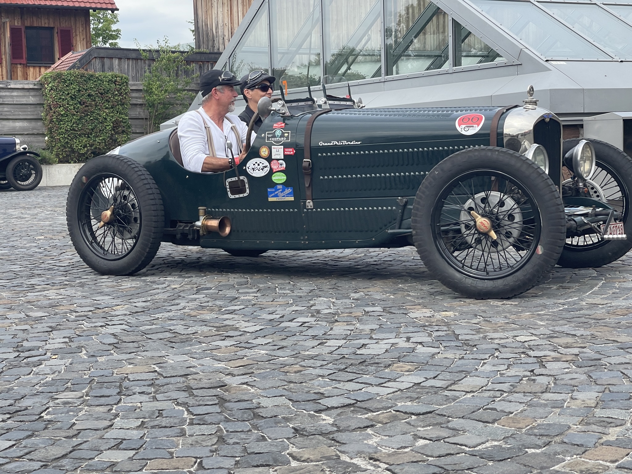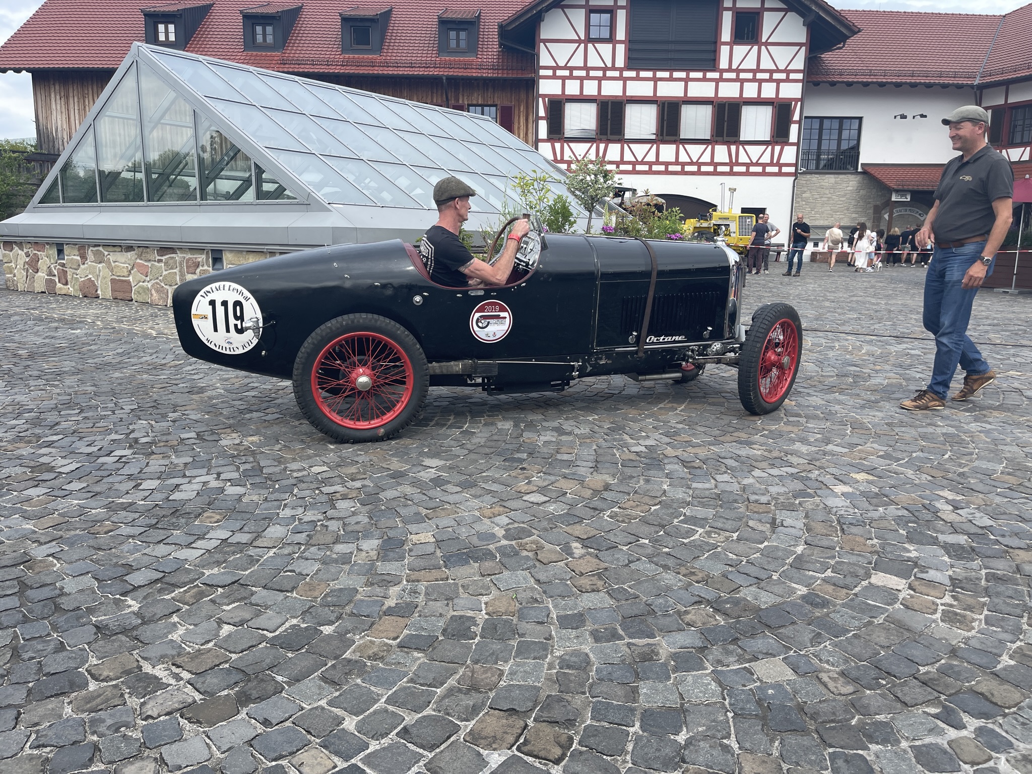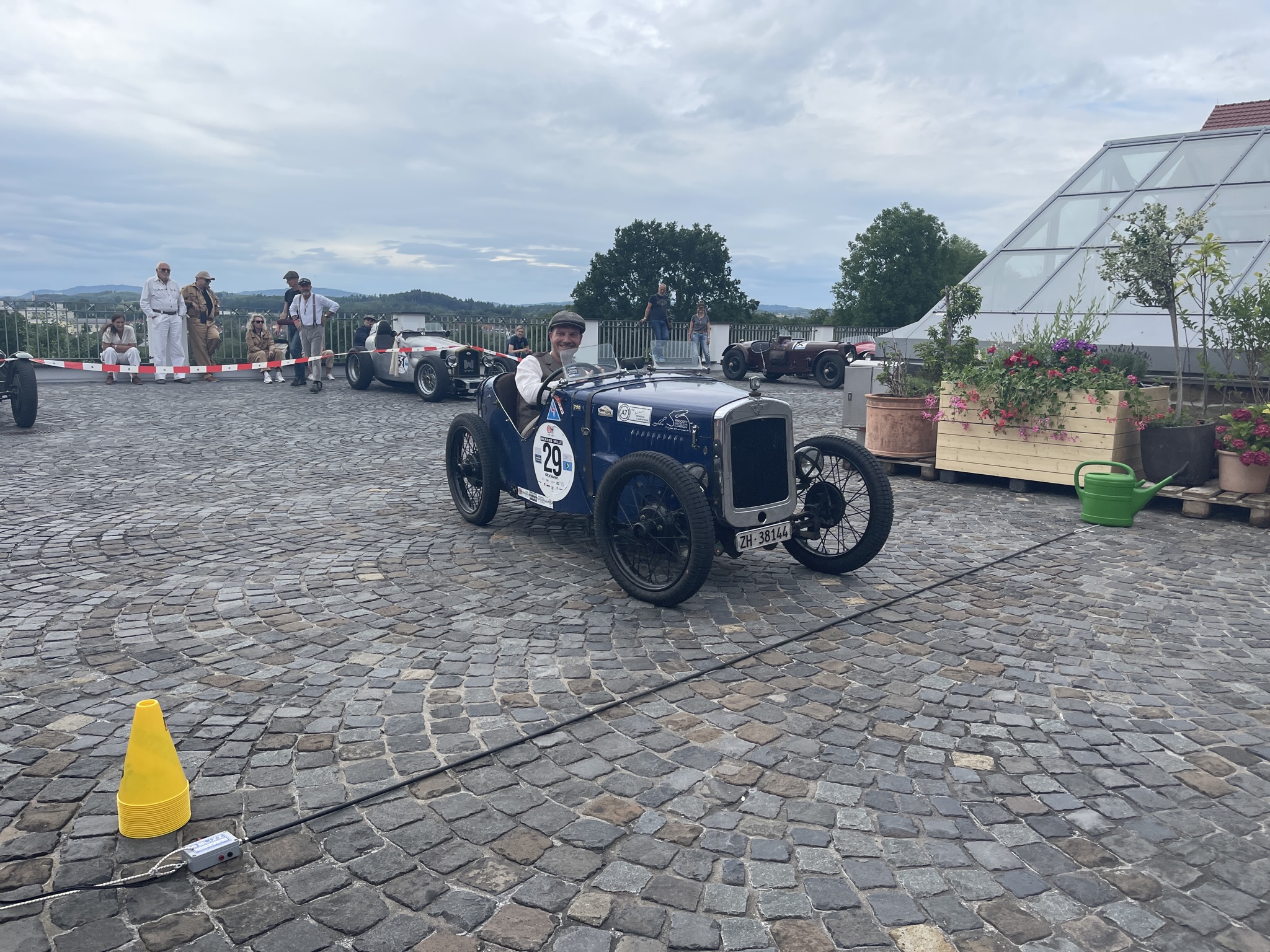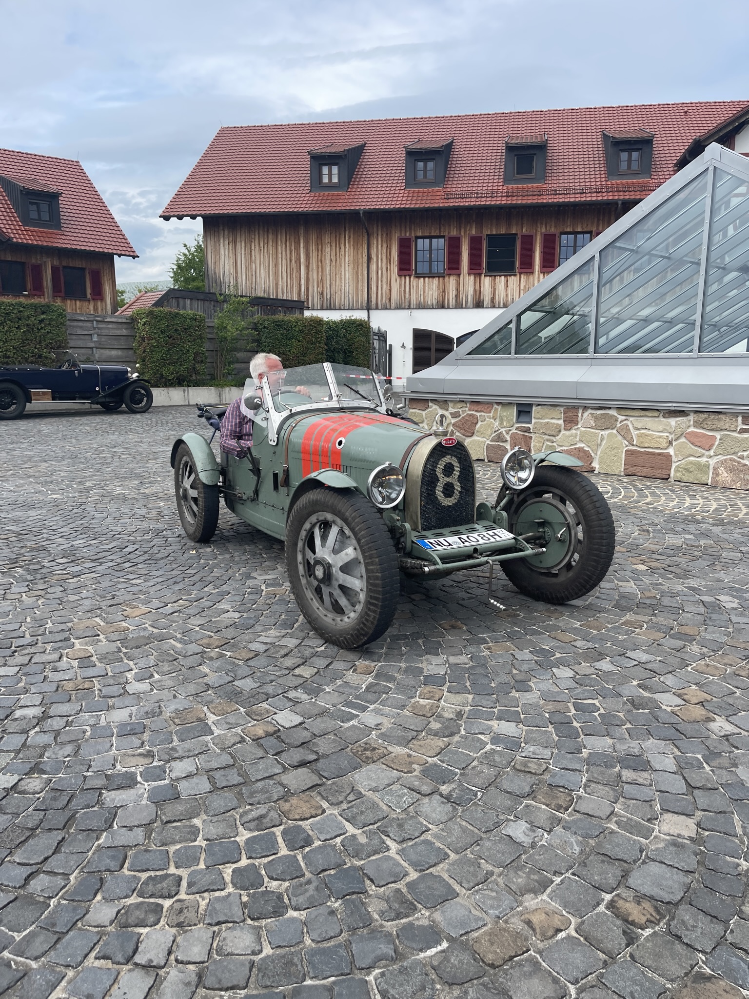 Ich denke (auch) die Gäste dort dachten sich das es ein wirklich schöner und vor allen Dingen ruhiger Platz wäre….bis wir kamen….20 Vorkriegsfahrzeug und nicht nur dies….wir haben dort eine Wertungsprüfung gemacht (den großen Preis von Gebhardsweiler). Es gab am Hof einen Parkur den wir mit genau 16 Sekunden, dann mit 20 und zum Schluss mit 18 Sekunden umrunden mussten…und das ohne Stoppuhr! 20 Vorkriegsautos haben also am Innhof (mit offenen Auspuff) den Parkur umrundet – Wir hatten auf jeden Falls Spaß 😉