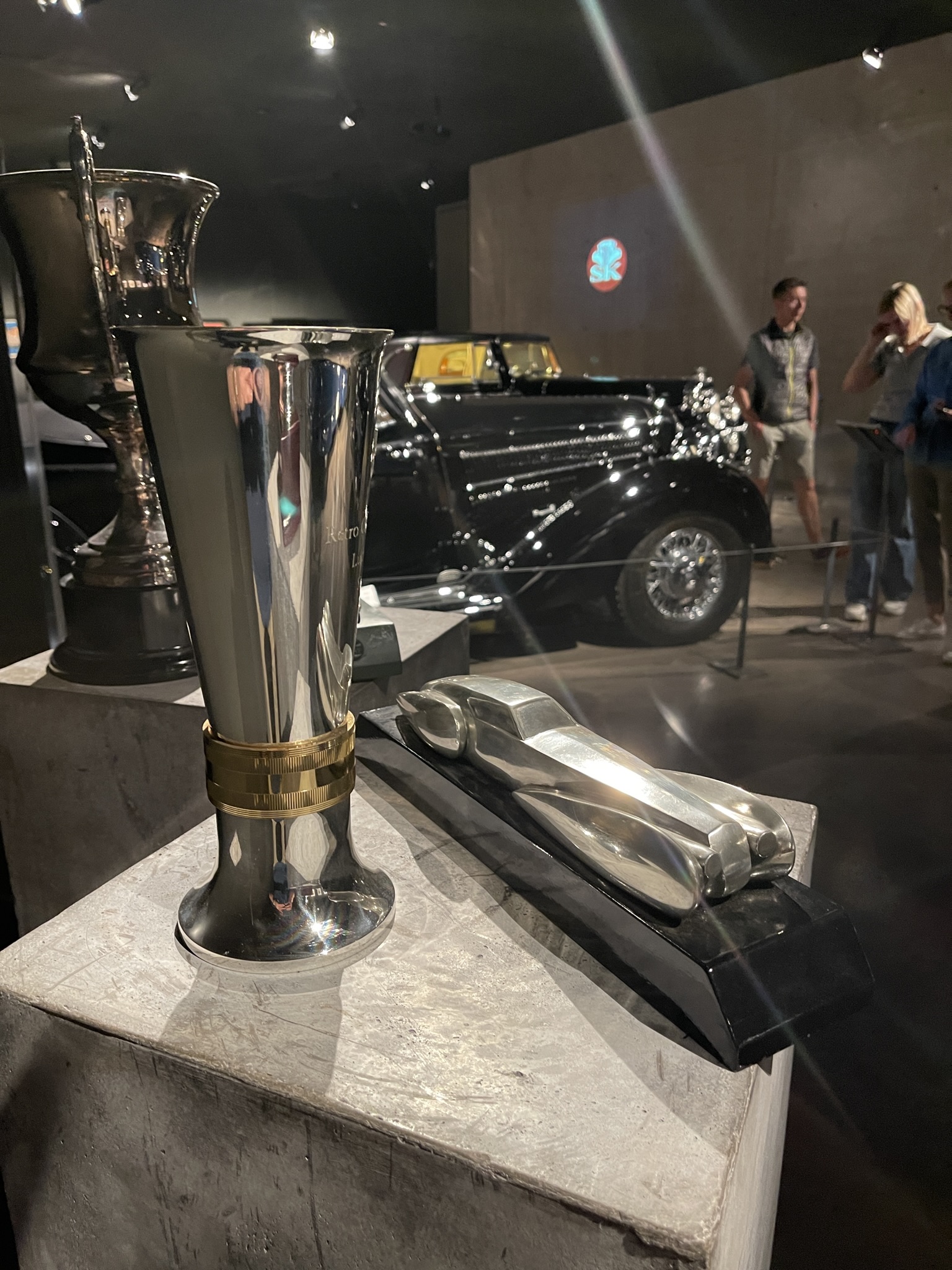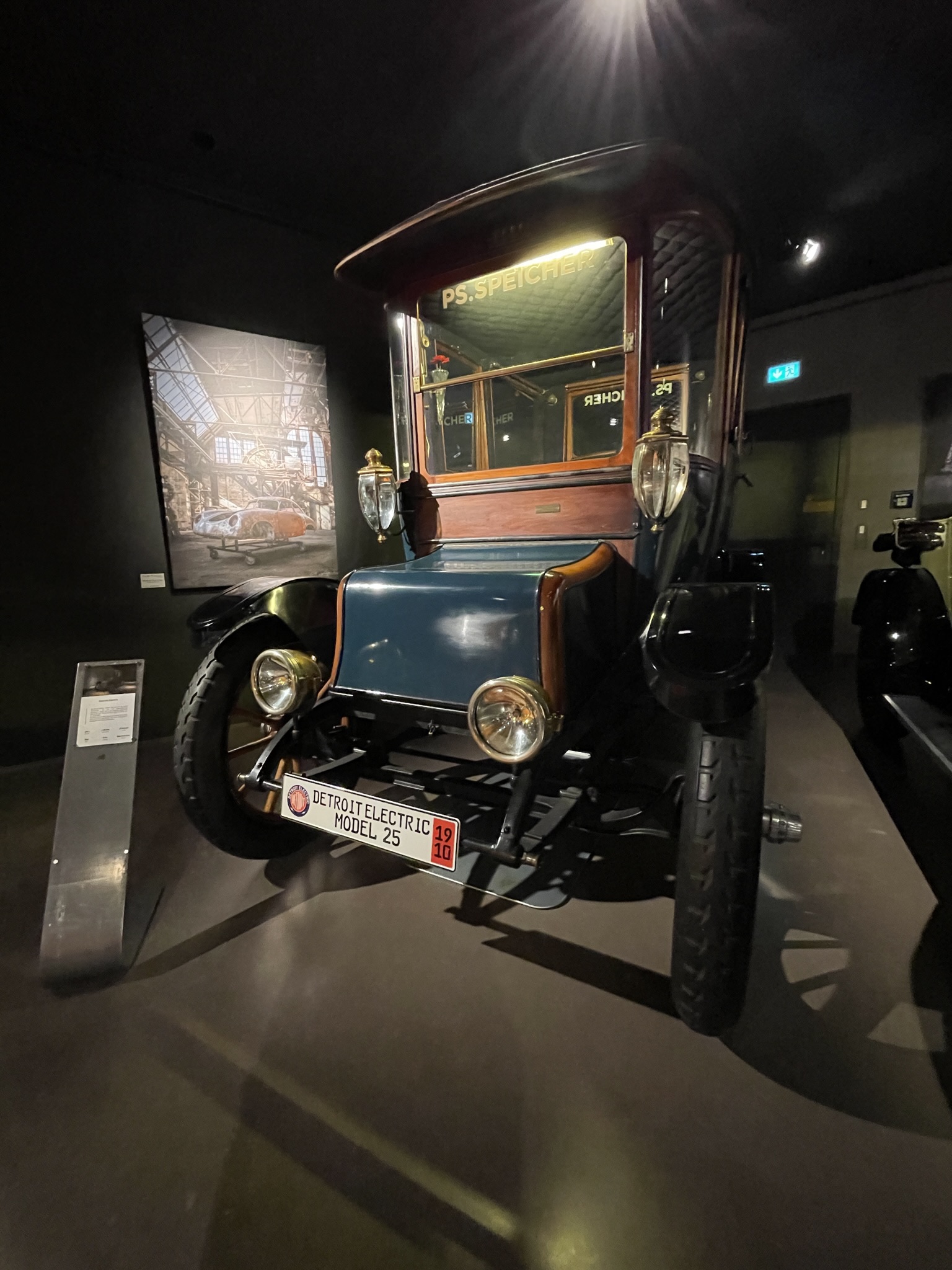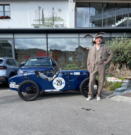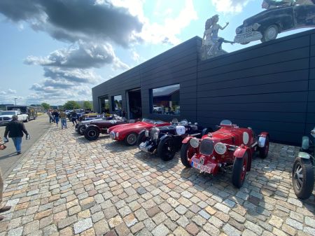 Das Wetter war uns übrigens gnädig denn eigentlich war Regen angesagt und zwar den ganzen Tag! Auf der einen Seite sind hohe Temperaturen für die Vorkriegsautos auch nicht gut aber fahren in Regen ist nun auch nicht perfekt (und hört mir auf mit dem Spruch “ es gibt kein falsches Wetter …nur falsche Kleidung“….Regen tut echt weh im Gesicht!). Wir haben es allerdings geschafft den Regen tatsächlich zu umfahren und erst nachdem wir im Museum waren hats ein wenig geregnet . Vielen Dank übrigens an Christoph der die Führung im Museum vorgenommen hat und uns vieles zur Entstehung diese erklärt hat.