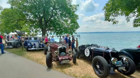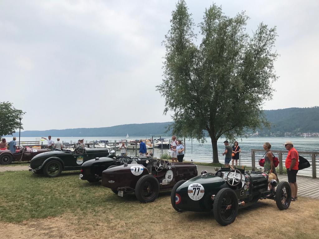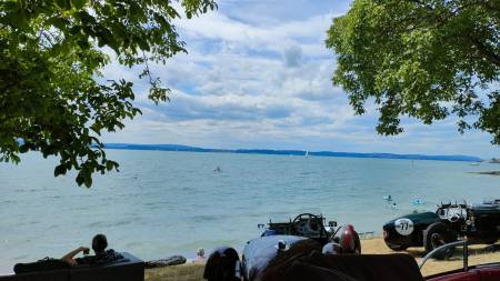 Zu Mittag waren wir an einem Lokal direkt am See….das besondere allerdings war das wir mit unseren Fahrzeugen Kreuz un Quer mitten unter den Gästen Parken durften (dafür auch vielen Dank an die Gäste die uns das nicht krumm nahmen sondern gefallen daran fanden). Das Einfahren übrigens war nicht ganz so einfach (und von leise und unauffällig kann nicht die rede sein) denn eigentlich war das als Gehweg gedacht und nicht als Einfahrt für Fahrzeuge. Die meisten unter uns hatten da kein großes Problem weil Vorkriegsfahrzeuge in der Regel eher klein sind, allerdings bei Rolf mit seinem Austin 20 war es echt Millimeterarbeit rein zu kommen (mein großen Respekt wie du das gemacht hast).